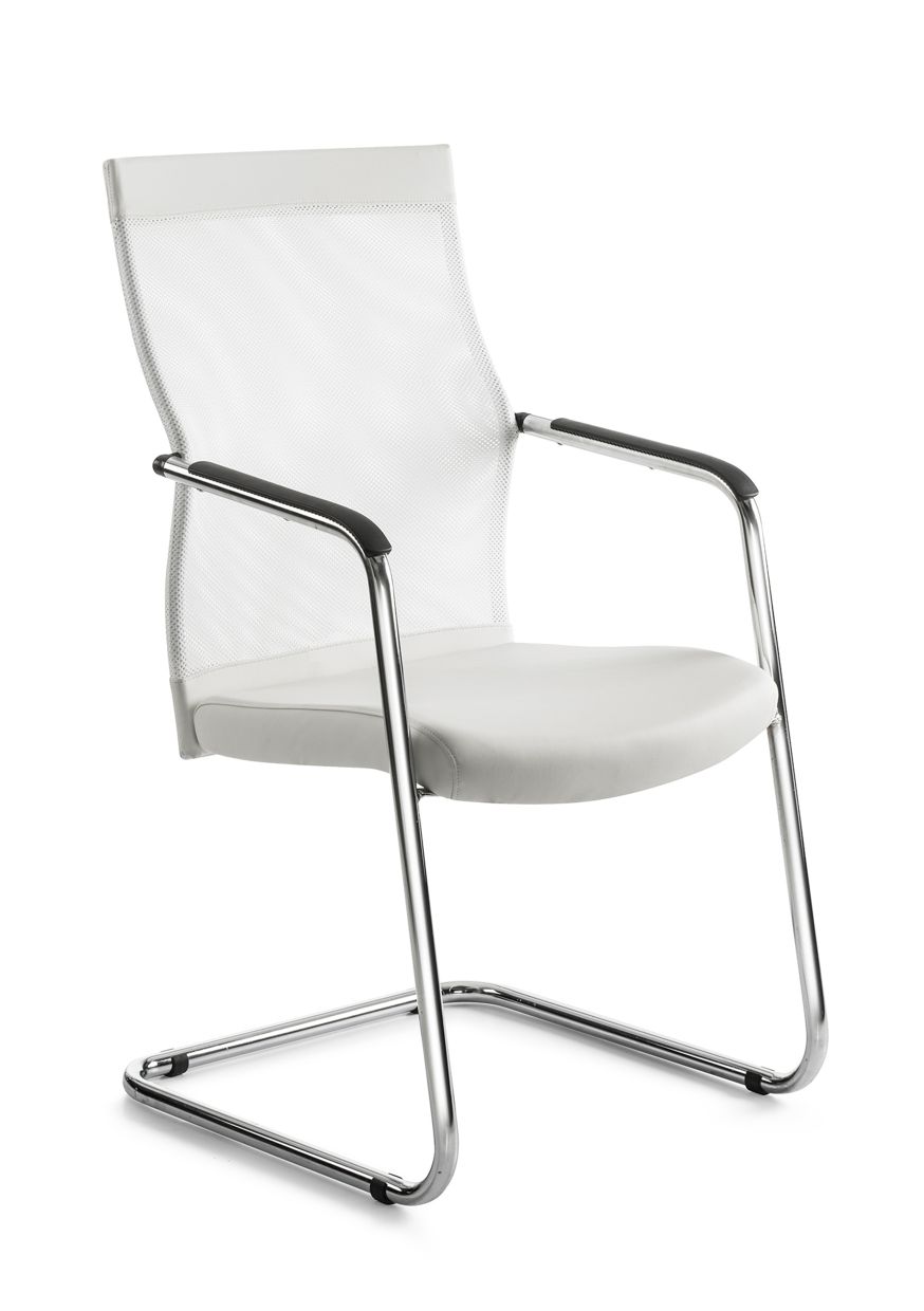 Forum Visitors Chair White PU upholstered seat and white Mesh back Chrome sleigh base 5 year guarantee