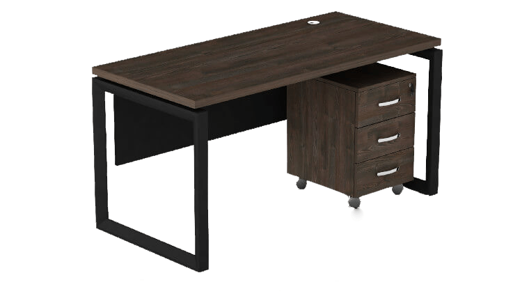 Features: Straight desk with white Melamine top and black steel End-legs with mobile Pedestal with 3 Standard drawers.