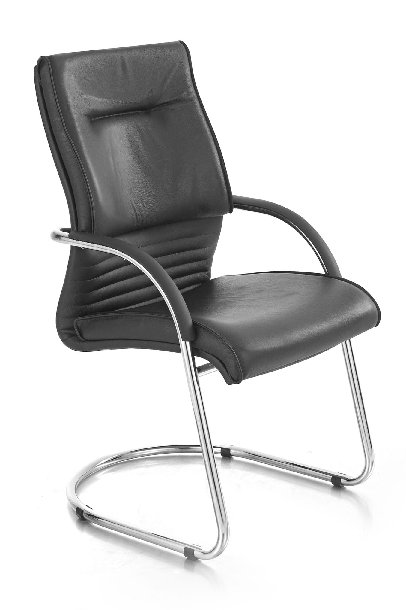 Pavone Visitor Chair Black PU upholstered seat and back Chrome sleigh base 5 year guarantee.