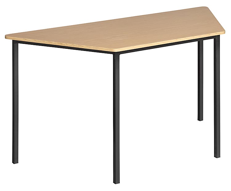 Trapezoid tables available in different finishes and sizes. Steel base and Melamine top
