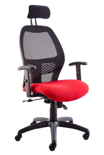 lower back support + adjustable headrest gas height adjustment black nylon base height adjustable arms 5 year guarantee.